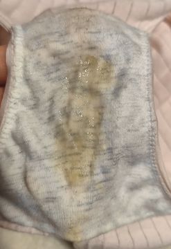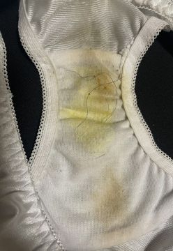 すでに固まって張り付いたオリモノもねばっとしたマ♡カスもべっとりのマニアさま向けクロッチです!⚠️