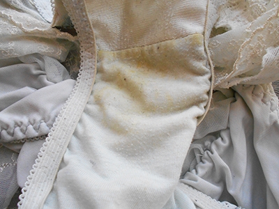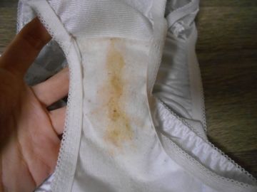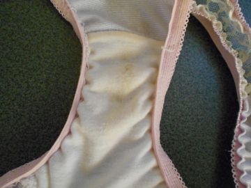 半日着用+オナ二回済みのクロッチの状態です。少しアンモニア臭がします(*ノωノ)