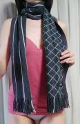 コムサのオシャレなマフラー(グレー×グリーン・ホワイト)