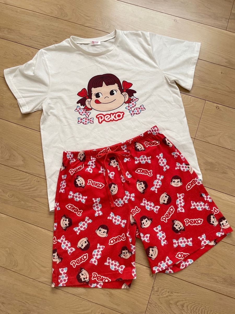 高校からずっと愛用してるaimerfeelで買ったペコちゃんのルームウェア上下セット( ˶ˆ꒳ˆ˵ )🎀🍪