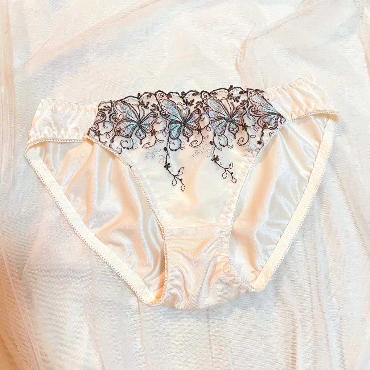 めっちゃお気に入りのネグリジェとセットで購入した思い出のパンティ🌷 きらきらの蝶々のデザインが上品で可愛すぎるの〜♪♪