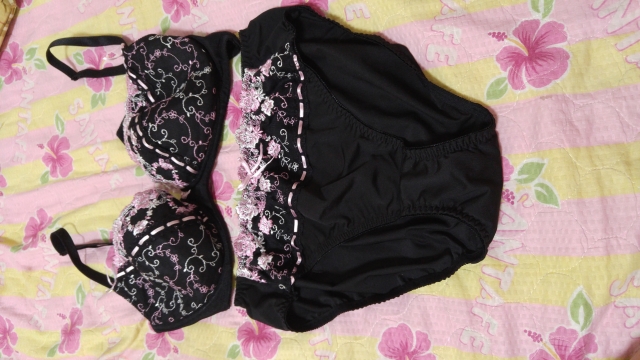 黒の花レース上下セット♥