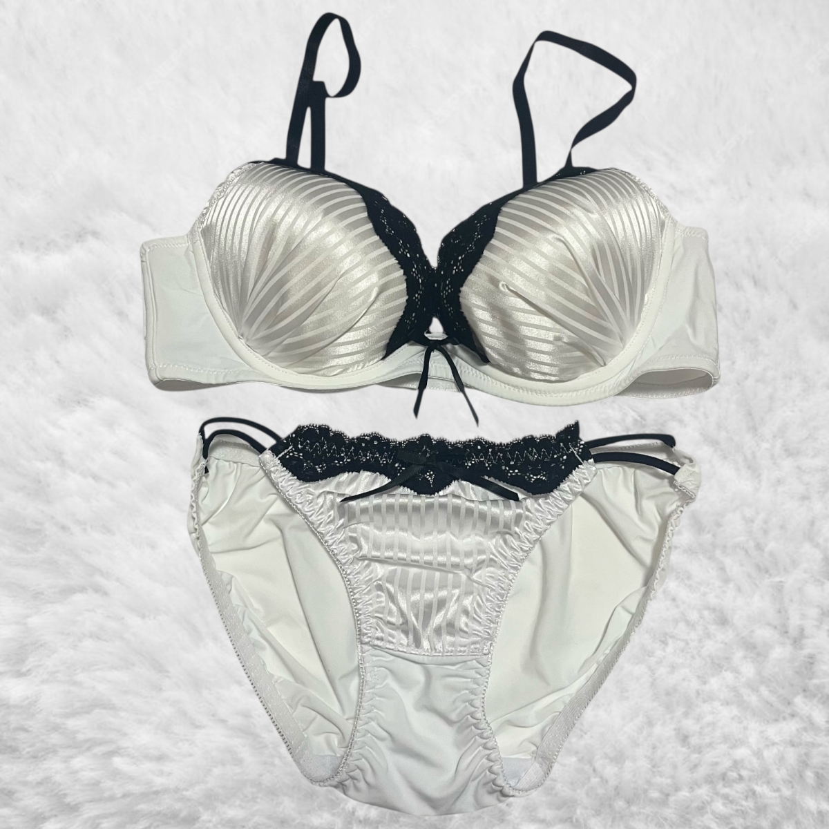 - 白のサテンと黒レースのブラジャー&パンツセットになります꜀( ꜆ᐢ. ̫.ᐢ)꜆