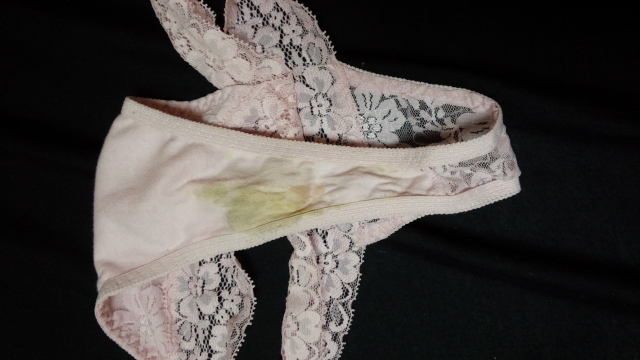 今回は2日間着用です。お風呂もその間入ってませんのでクロッチ部分はお*んこの匂いと汚れでかぴかぴです(〃ω〃)